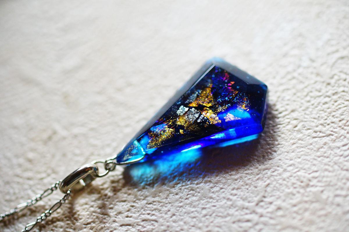 『Pentagon polarization』シャープな五角柱のペンダントです。角や面は可能な限りシャープにカットしています。美しいトゥルーブルーをベースにして、