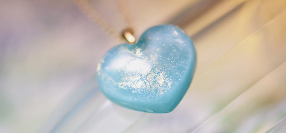 - 優しいブルー系をベースにしています。ふっくらしたハートの内部はゴールドのラメが優しく輝きます。胸元に可愛らしいハートのネックレスです。