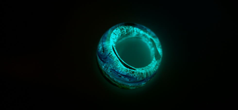 - 大きな海を夕日が美しく染めているというイメージを大切に、小さなリングの中にその情景を表現いたしました。写真以上にラメが輝いております。また光を吸収するたびに暗闇でお楽しみ頂ける蓄光加工を施しております。