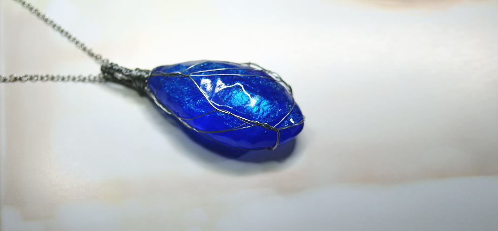 1330 『Future of hope~ 清らかな心 ~』円・楕円・ドロップタイプ<a href="/products/detail.php?product_id=1160">『Future of hope』</a>をベースにした色違いのネックレスペンダントです。優しく美しい海の色合いの二色をグラデーションにし、気泡を全体に施しています。表面にはデザイン彫刻を施しました。透明感のある素敵な作品になりました。
