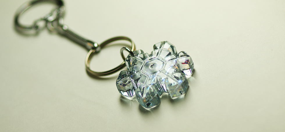 - 寒い真冬降る雪に手袋をかざしますと、綺麗な雪の結晶を見ることができます。そんな素敵な結晶を表現いたしました。ベースは透明感のあるブルーグレイを使用しました。また、優しく美しいグラデーションの輝きのレインボーラメを施しました。下方には、ダイクロ偏光ガラスの輝きを何本か施しています。光の当たり方や見方によって、ブルーやグリーンなどに偏光してご覧いただけます。表面には、結晶のイメージを大切に彫刻を施しました。大変美しく素敵な雪の結晶が完成いたしました。