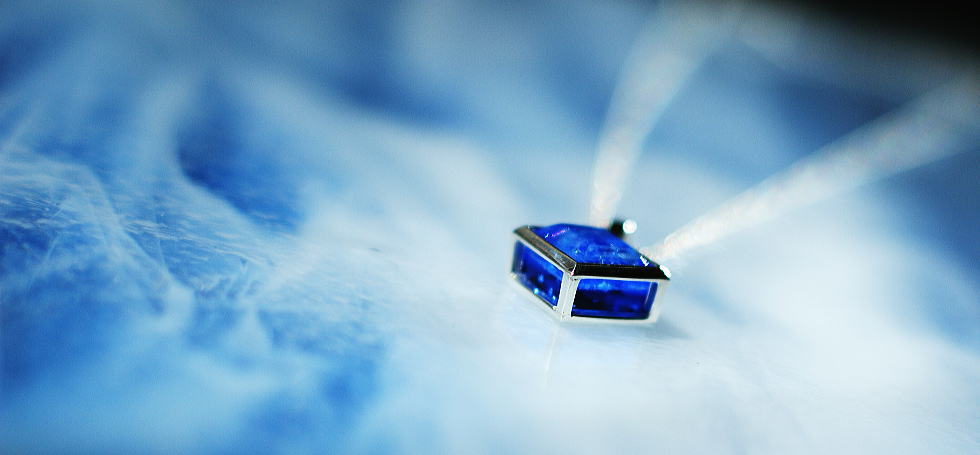 2055 『Perseus's proof ~ Blue star ~』ダイカット(平面造形)タイプコバルトブルー(ロイヤルブルー)をベースにしたエンブレムフォルムの作品です。内部には、模様のように様々な色合いに輝くレインボーラメを施しています。輝きの色合いは美しいブルーの他グリーン、レッド、ゴールド等大変複雑な輝きが眩いほどに輝きます。ベースの色合いとあいまって、しばらく見入ってしまいそうです。大変美しい輝きの素敵なペンダントに仕上がりました。末永くご愛用いただけましたら、作り手といたしましても大変うれしいです。