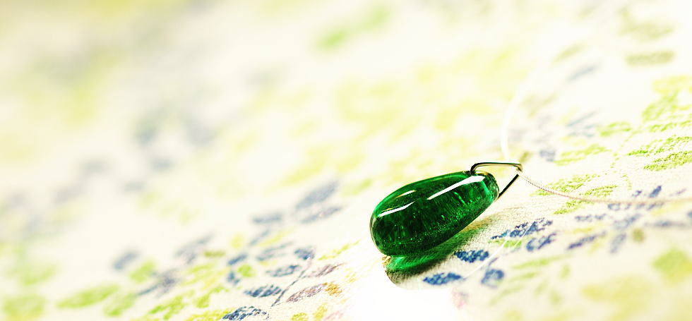 - 爽やかなエメラルドをイメージしたシンプルなドロップタイプです。内部には「思い出の大切なもの」をお入れしました。