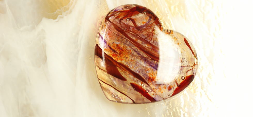 - 大切な思い出をお入れしてお作りしたメモリアルハートタイプオブジェです。クリアーをベースにレッド、パープル、レッドパープル等のカラーガラスと優しく美しく輝くラメを加えてマーブル加工を施しました。透明感もあり内部の存在もわかります。全面手磨きした滑らかな手触りと丸みのあるフォルムがとても優しい素敵なオブジェに仕上がりました。末永くご愛用いただき大切な存在を身近に感じていただけましたら、作り手と致しましても大変嬉しいです。