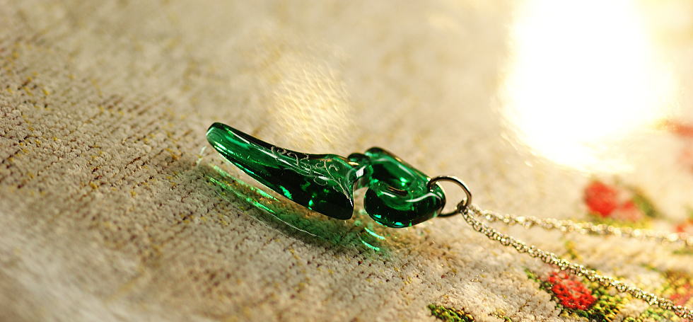 - 素敵なフォルムのデザインペンダントです。厚みを5mmほどに抑えています。色あいは透明感のあるエメラルドグリーン。表面にはツタ模様を彫刻しています。いつでも身に着けていただける印象的で素敵なペンダントに仕上がりました。末永くご愛用いただけましたら、作り手といたしましても大変嬉しいです。