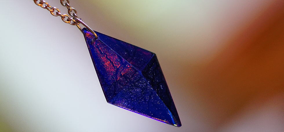 美しいラメの煌きを湛えた五面体ペンダント。2499『深海のBalkan』【受注制作】