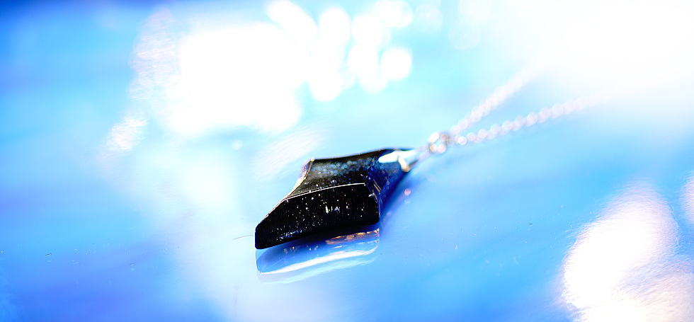 2179 『かんたん封入ペンダント / Standard Dreamblue(パープル)』立体造形タイプ限定 : 1量産型八面体「Standard Dreamblue」に、ラフォルムオリジナルの「ねじ式封入口」を取り付けたメモリアルペンダントタイプです。5mm以下の小さな「思い出の大切なもの」をご自分の手でガラスの中に封入してお使いいただけます。サイズは縦35mmで変更できません。