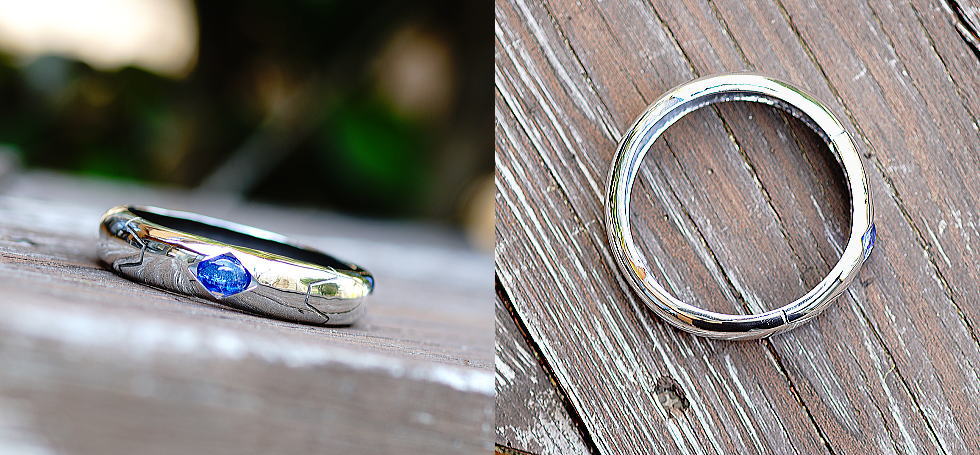 トップのガラスルース部分には単色のライトピンクとコバルトブルーを使用し、さらに暗闇でも淡い光をお楽しみいただける蓄光加工を施しております(※赤系は赤系のガラスに包まれた赤の蓄光素材であるため、その性質上ほぼ光を肉眼では認識できません)。Silver925素材のオーダーメイドリングは幅を広めにとっております。ぜひこれからも末永くお楽しみいただければ幸いです。