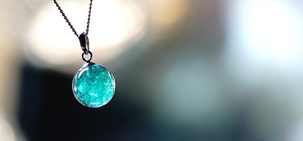 - シンプルな球体のフォルム。内部には暖かな南の海のようなアクアマリンブルーの色合いを施しました。チェーンや金具パーツにはプラチナ素材をお付けいたしました。世界にひとつのメモリアルペンダントとしてお作りしております。ぜひこれからも末永くご愛用いただければ幸いです。
