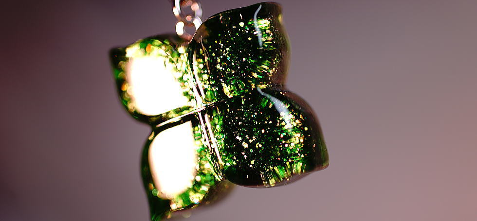 グリーンに煌く美しい四葉。2761『幸せの四つ葉 ~ 煌き ~』【受注制作】