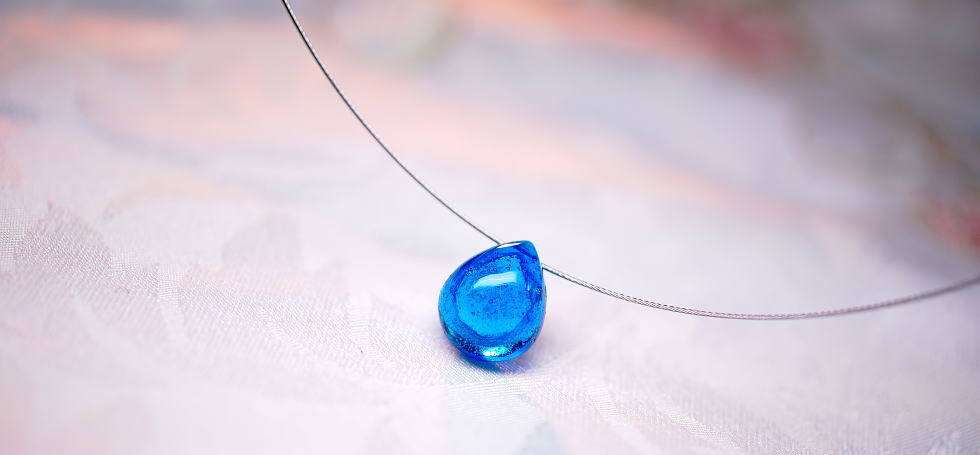 - 優しい水色系の透明色をベースにした、可愛らしいドロップタイプのメモリアルペンダントです。内部空間には「思い出の大切なもの」をお入れしています。ステンレス製のワイヤーはお肌に優しく、身に着けていないほど自然な感じでお着けいただけます。末長く大切な存在を感じでいただけましたら幸いです。