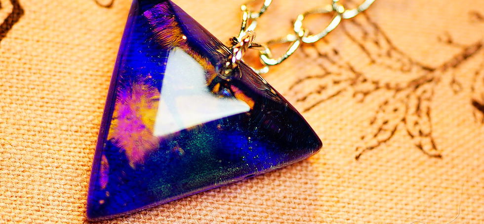 アメリカンガラス /約24×26×9mm /青紫系 /イリデセント(ラメ)加工 / 蓄光加工 / 喜平チェーン シルバー色 45cm /-『True Triangle』は大変人気の高い作品でもとの作品は販売してしまいましたので、ご希望の方には同じイメージで受注制作にて丁寧にお作りしてまいります。一点ごと全て手作業での制作ですのでイメージや仕様などが変わってくる部分もございますが、作品の個性としてぜひお楽しみいただければ幸いです。