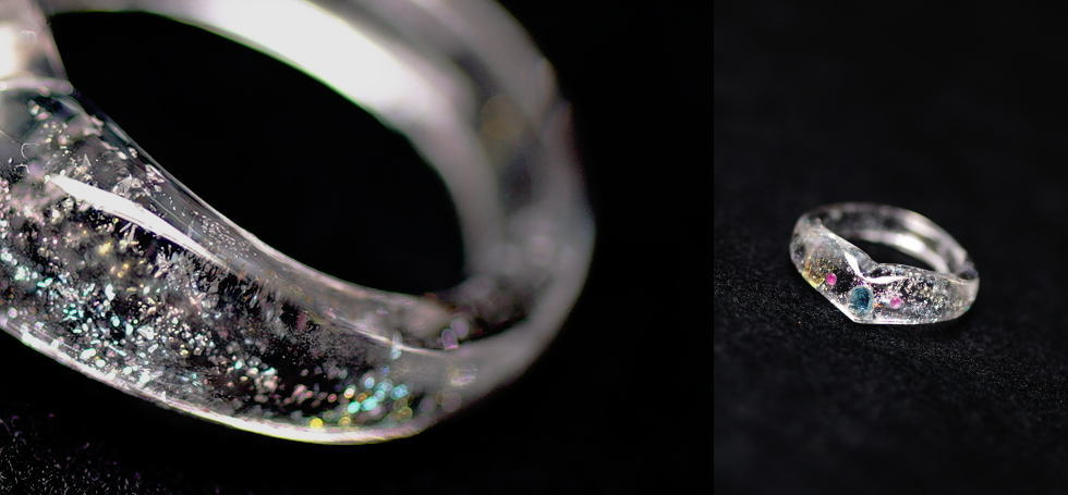 2726 『Holographic galaxy』立体造形タイプ見る角度や光の当たり方で、無限の表情に変化する美しい煌きを閉じ込めたアイスロックメモリアルペンダントです。ダイクロ偏光ガラスの煌きをよりお楽しみいただけるようにお作りしておりますので、その煌きの変化などをぜひお手にとってお楽しみください。裏面から「思い出の大切なもの」をご確認いただける仕様といたしました。チェーンや金具パーツはチタン製をお付けしております。大変軽くお肌に優しい素材です。