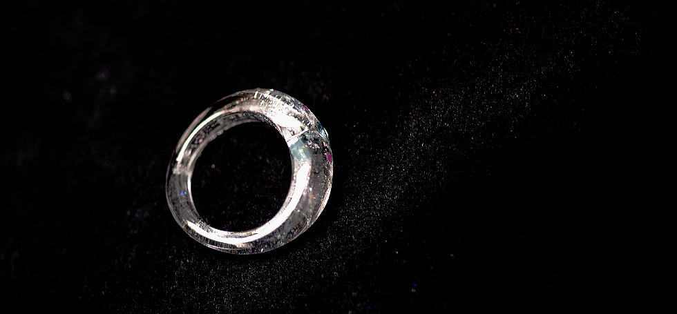 - 美しい「ダイクロ偏光ガラス」をちりばめた、透明感のある世界にひとつのオリジナルガラスリングが完成いたしました。光に反射させることで様々な表情をお楽しみいただけます。全体はハート型をイメージさせるフォルムで、細身の雰囲気で仕上げております。トップには天然石のブルートパーズ1石とルビーを2石を施してお作りいたしましたどうぞ。これからも末永くご愛用頂ければ幸いです。