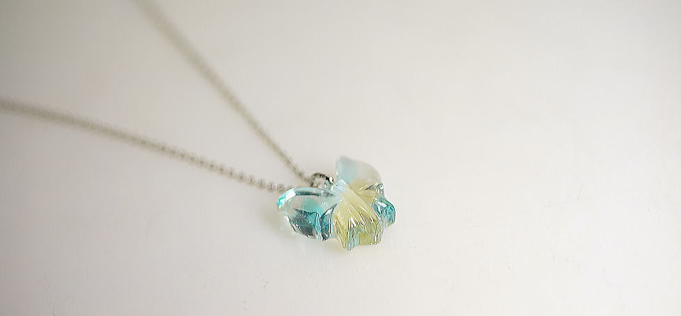 - 『Pure Morpho』を小ぶりにしたミニサイズ。優しい色合いと透明感が魅力的なモルフォチョウタイプのペンダント。クリアーをベースに淡いブルー系やラベンダー系、イエロー系グリーン系を使用して、大胆なマーブル加工を施しています。ガラス本来の透明感をお楽しみ頂ける素敵なペンダントです。
