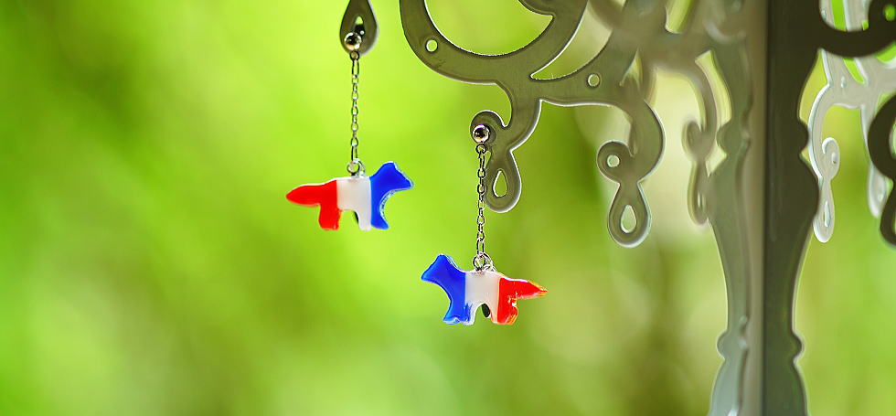 - お伝え頂いたご希望の可愛らしいキツネのイメージを再現しお作りした、小ぶりサイズの両耳用ピアスが完成いたしました。フランス国旗(トリコロール)の色合いを表現した3色をベースカラーに、可愛らしいキツネのフォルムを削り出して仕上げてまいりました。耳元でゆれるようチェーンをお付けしております。どうぞ末永くお楽しみいただけましたら幸いです。