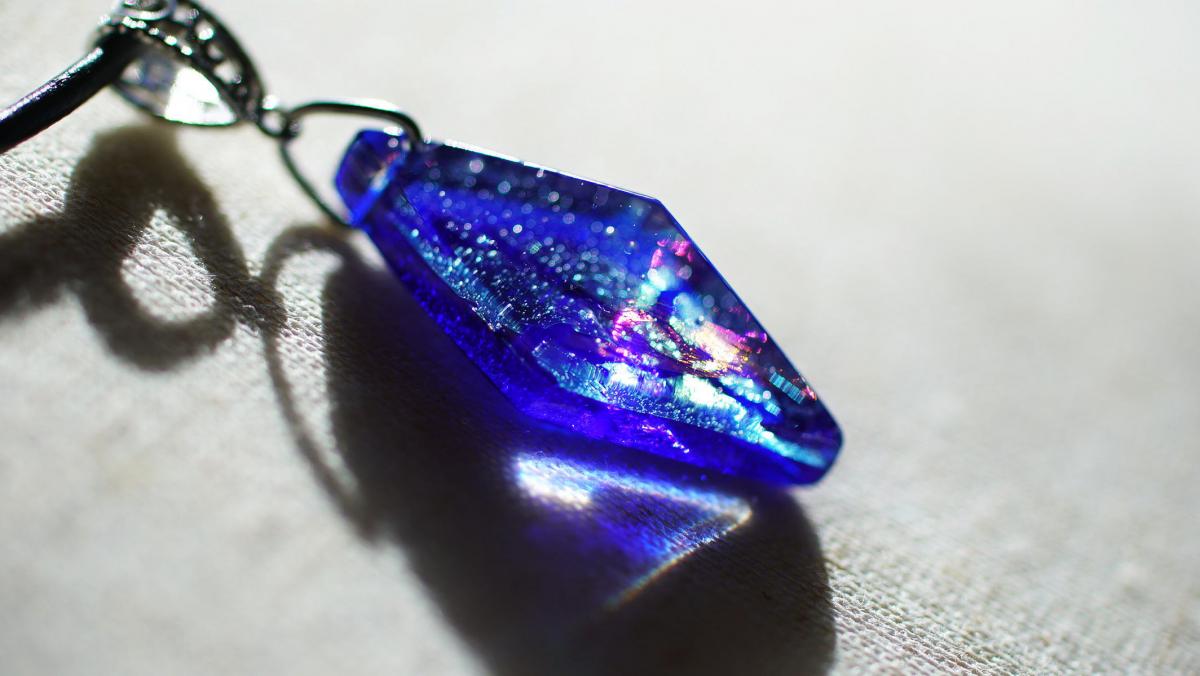 - コバルトブルーのベースカラーに美しい煌きを閉じ込めたガラスの五面体ペンダント。見る角度や光の当たり方でその煌きは美しく変化しガラス全体に乱反射して見えます。小ぶりのサイズで仕上げておりますので、様々なシーンで身に着けやすい逸品です。暗闇では神秘的な淡いブルーの光を放ちます。ぜひこれからも末永くお楽しみくださいね。