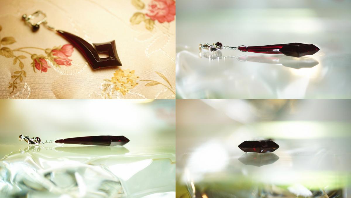 - ずっと憧れていらしたゲーム、「原神」に登場するキャラクター「淑女」シニョーラが身に着けている耳飾りをモチーフに、オリジナルアレンジを加えてお作りした一点もののオーダーメイドイヤリングが完成いたしました。色味は深みのあるガーネットレッドでお作りいたしました。イヤリング金具部分にも小さなガラスルースを設置しております。フォルムは、表裏立体の鋭利な形状を、ガラスの塊から全て手作業で削り出し磨き上げております。非常に繊細で複雑な面造形のフォルムでしたため、手間と時間を要する大作となりましたが、ぜひ末永く様々なシーンでお楽しみいただければ幸いです。