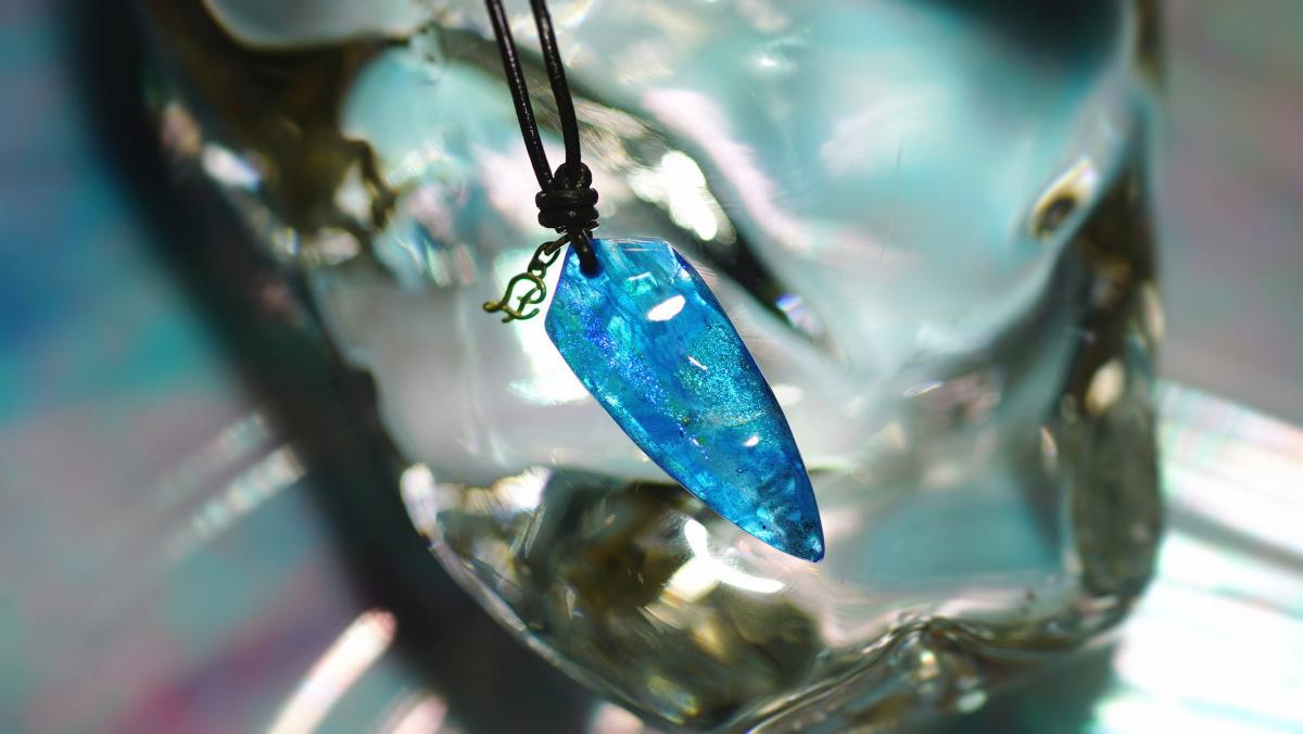 - 『ICE FANG ~ 氷の妖精 ~』とほぼ同じ色味や仕様、形状は『Marine gold rush』にてお作りいたしました。表面にアイスロック加工を施し、内部には蓄光加工や「ダイクロガラス」が美しく煌きます。
