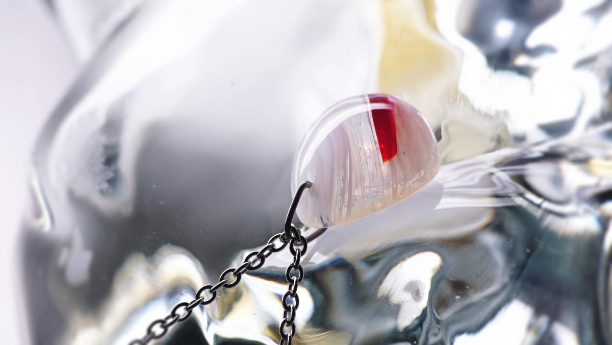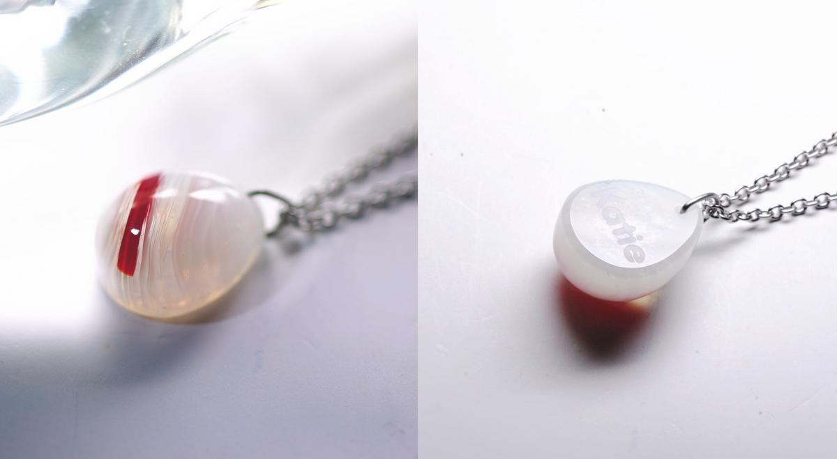 - ヴェールの様に優しいマーブル模様が印象的な、世界にひとつのオリジナルメモリアルペンダントです。クリアーとホワイトの重なりあった繊細な模様が、斜めに流れるように入っています。またアクセントに赤のラインを1か所施しました。見る角度や光の当たり方で様々な表情をお楽しみいただけます。内部に「思い出の大切なもの」を封入しております。裏面にはお名前の彫刻を施しております。ぜひ少しでもお心の支えとなっていただければ幸いです。