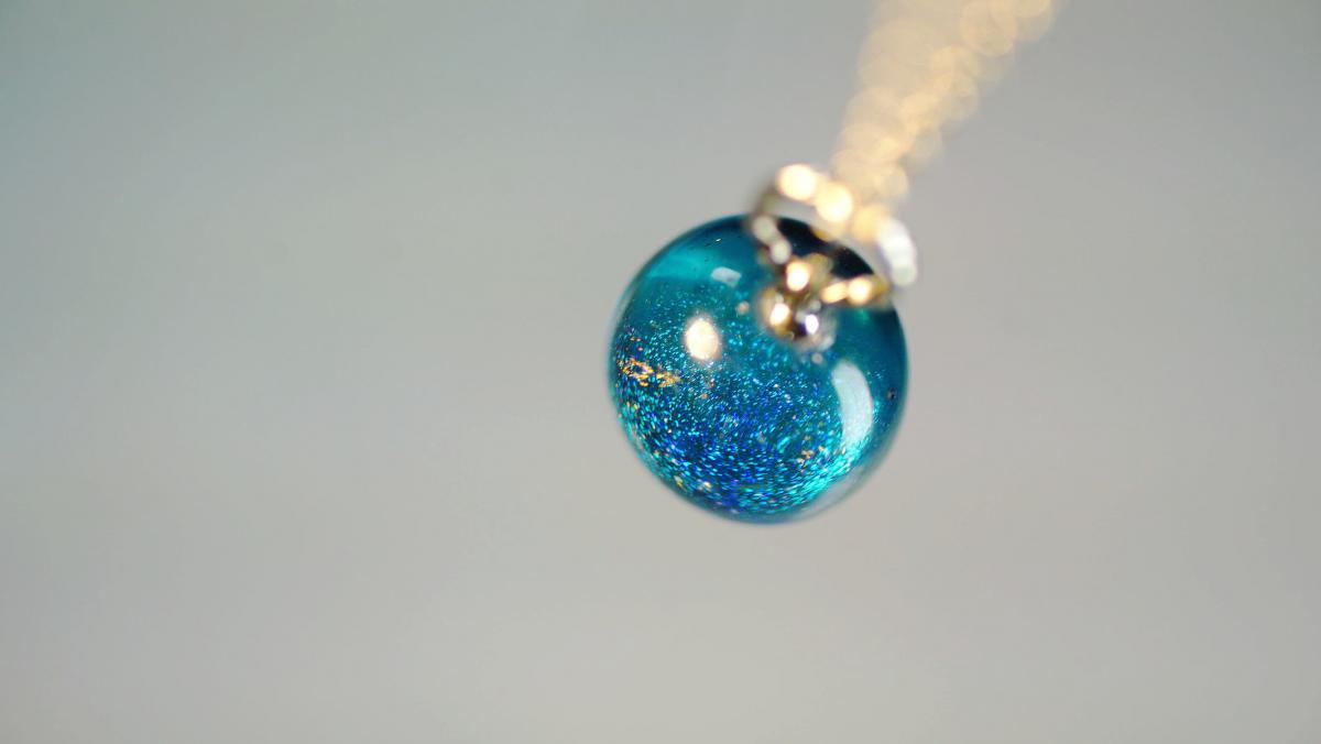 - 明るいブルー系数種類と、美しい煌きをマーブル模様で再現した透明感のある美しい球体ペンダントです。見る角度や光の当たり方で内部の様々な表情をお楽しみいただけます。ぜひお手に取ってお楽しみください。