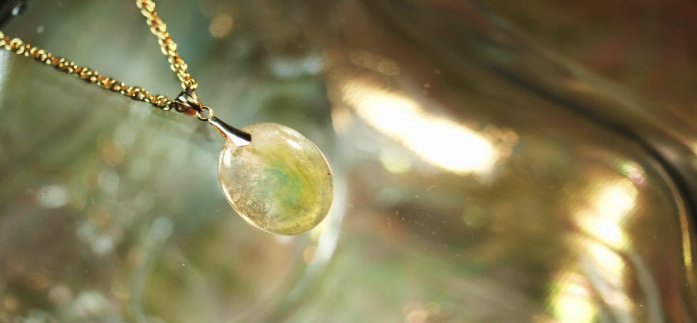 - 作品「渦潮」をベースに、カラーをグリーン系に変更した楕円形ネックレスです。