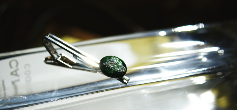 - 限定 : 1内部に純銀糸でアイビーのような幾何学模様を封入しています。ベースは細かく美しく煌くグリーン系のラメを施しました。神秘的で美しいネクタイピンです。