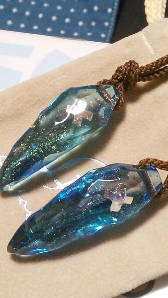 698 『One true way ~ 風を感じて ~』四角・多角・星タイプスタイリッシュな直方体タイプのネックレスです。内部には美しいレインボーラメが幾重にも重なって大変美しく輝きます。光を吸収する度にホタルの光のように神秘的に光る蓄光加工も施しました。