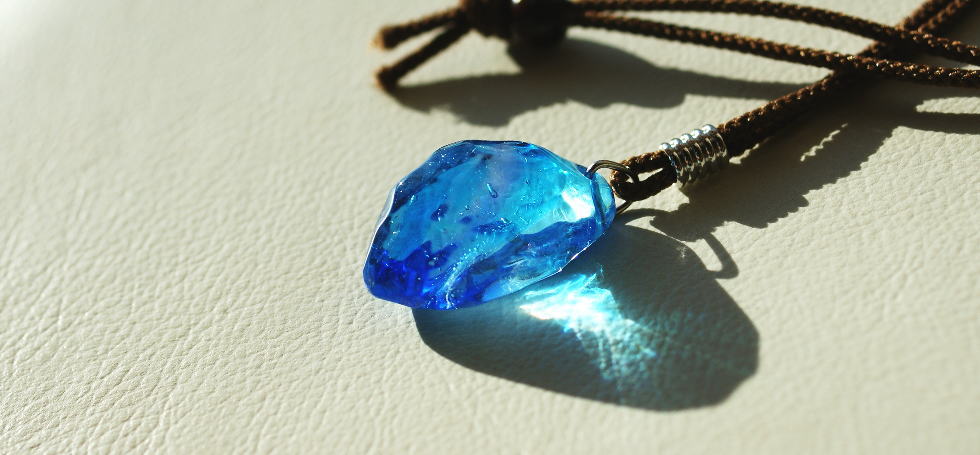 492 『Cross ~ 愛の唄 ~』クロスタイプアクアマリンブルーをベースに致しまして、美しく輝くラメを施しました。光の当たり方や見る角度によって様々な輝きをお楽しみいただけるクロスネックレスです。