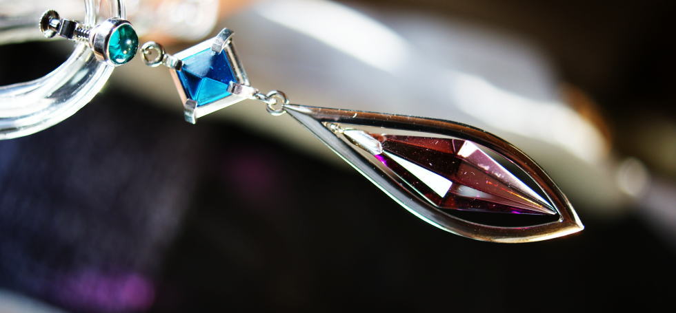- アニメのキャラクターが、身に着けているイヤリングをモチーフにした片耳用コラボイヤリング。Silver925製で、それぞれのガラス部分を優しく包むようにしています。エメラルドグリーンの半球、ターコイズブルーの菱形、ガーネットカラーの八面体が、それぞれ存在感が有りゆらゆら揺れます。